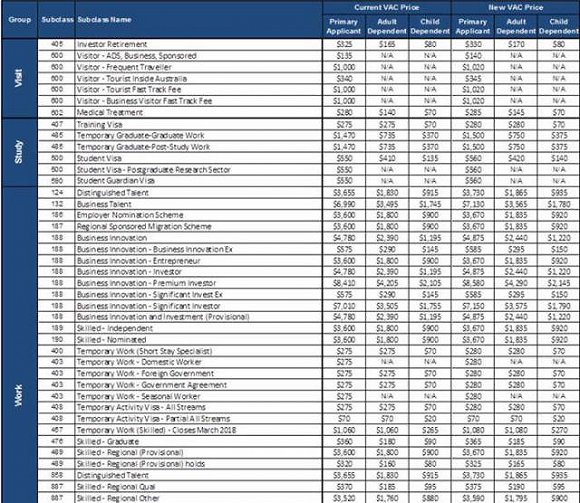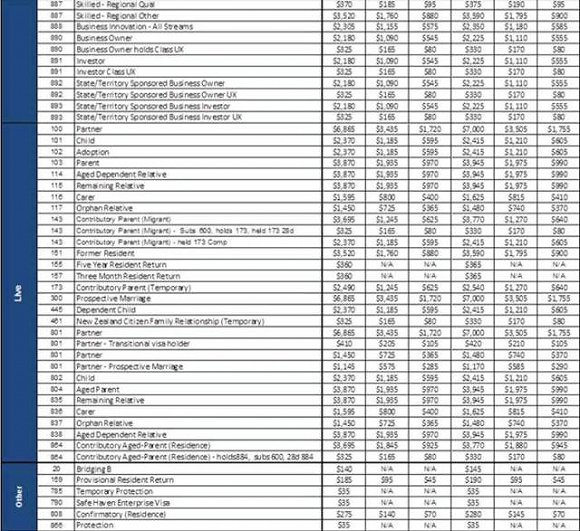 主申請人的學(xué)生簽證費將從550元漲至560元,未成年申請人的簽證費將從410元漲至420元。雇主提名(Employer Nomination)和次發(fā)達地區(qū)擔(dān)保移民計劃(Regional Sponsored Migration Schemes)的簽證費將漲價70元,從3600元漲至3670元。配偶簽證(Partner visa)費用將從6865元升至7000元。