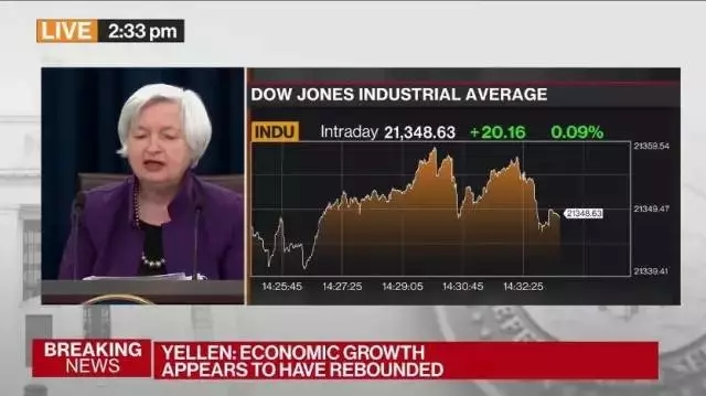 而美國三大股指在耶倫發(fā)表講話之后都出現(xiàn)小幅跳水的走勢。