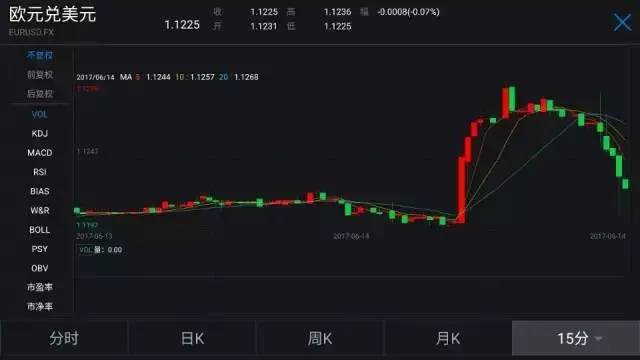 歐元對美元方面,與美元指數(shù)走勢相似,在加息結(jié)果宣布前,歐元對美元匯率一度從1.212升至1.1296的高點,隨后又再次回落到1.1224附近。