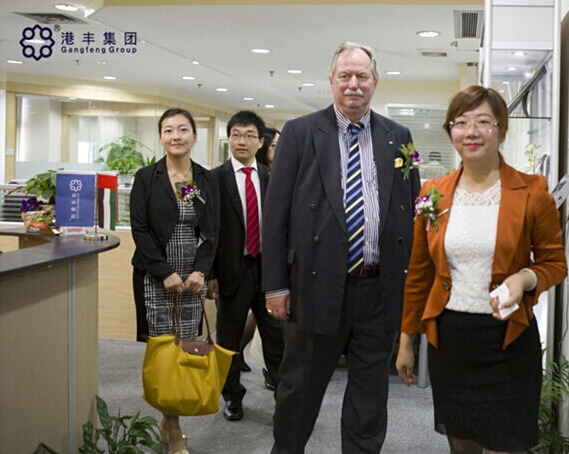阿聯(lián)酋哈伊馬角政府投資局Mr. Peter-Michael Shuster一行正在參觀港豐集團(tuán)深圳公司辦公區(qū)域